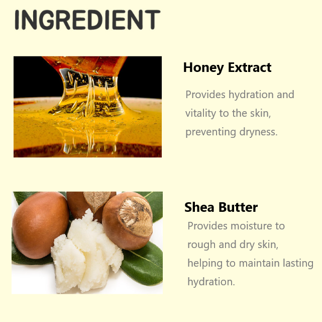 Water, Glycerin, Cetyl Ethylhexanoate, Caprylic/Capric Triglyceride, Butylene Glycol Dicaprylate/Dicaprate, Dipropylene Glycol, Butyrospermum Parkii (Shea) Butter, Dimethicone, Betaine, Butylene Glycol, Yogurt Extract(300ppm), Royal Jelly Extract, Propolis Extract, Honey Extract(10ppm), Sorbitan Stearate, PEG-100 Stearate, Glyceryl Stearate, Polysorbate 60, Carbomer, Arginine, Disodium EDTA, Chlorphenesin, Ethylhexylglycerin, 1,2-Hexanediol, Fragrance, Benzyl Benzoate