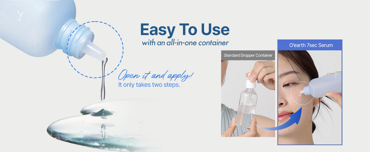 - SIMPLE & EFFECTIVE USAGE: Achieve the best results by applying the serum directly onto the skin, allowing for complete absorption. Enhance your skincare routine with O'earth 7sec Ampoule and follow up with your favorite makeup for a natural, radiant look.
