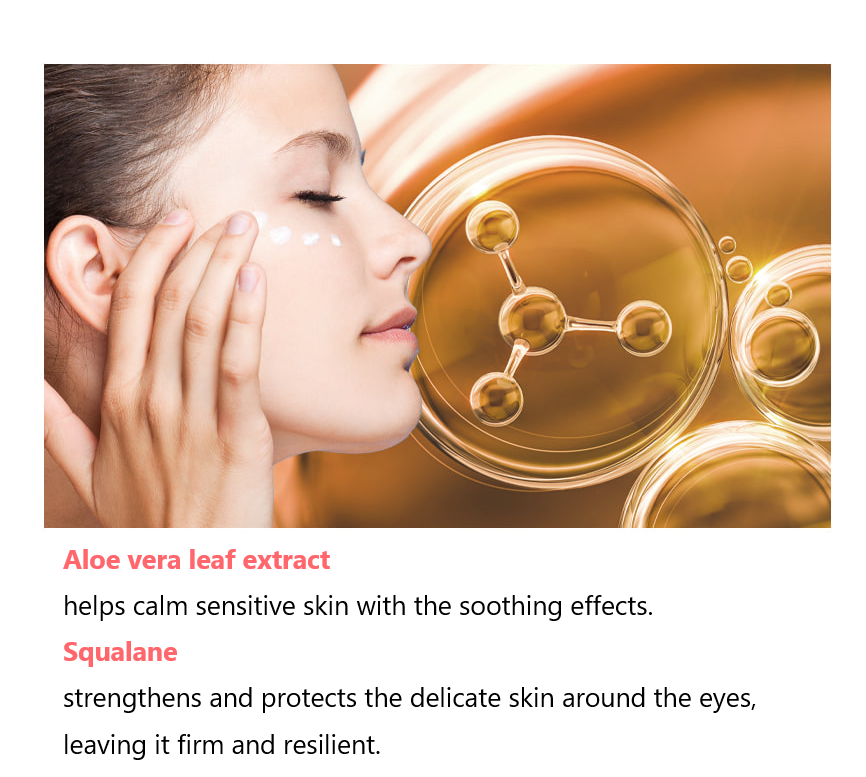 - [CALMING EFFECTS ON EYE AREA]Blends with Aloe Vera Leaf Extract to effectively soothe irritated skin while Squalane helps to firm the look of skin amd forms a skin barrier to provide continuous moisture.
