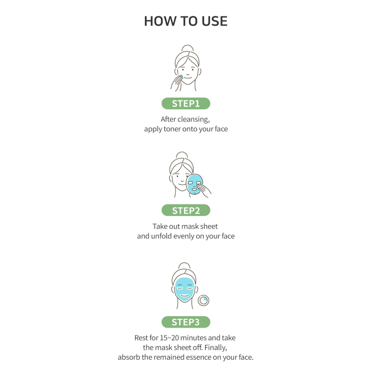 4. Relax with mask sheet for 15~20 min and take it off. Then, pat down your face to absorb essence .