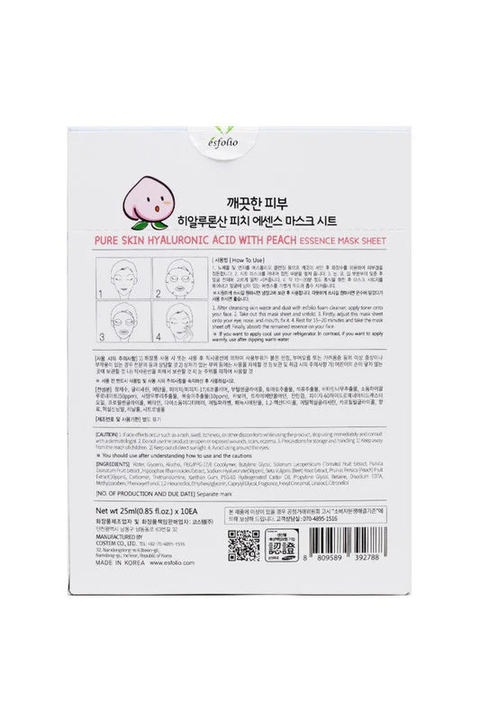 Esfolio Hyaluronic acid with PEACH Essence Mask (10 Sheets)