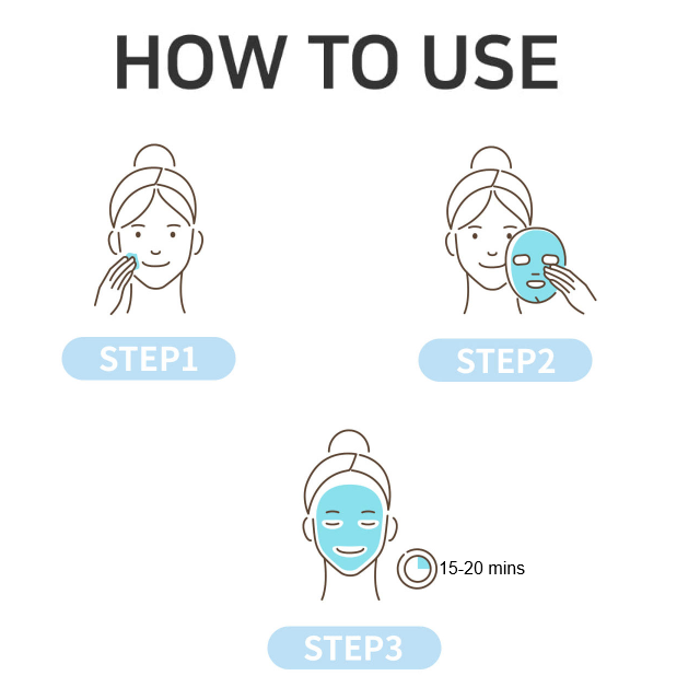 4. Relax with mask sheet for 15~20 min and take it off. Finally, let the residual essence absorb by patting down your face.